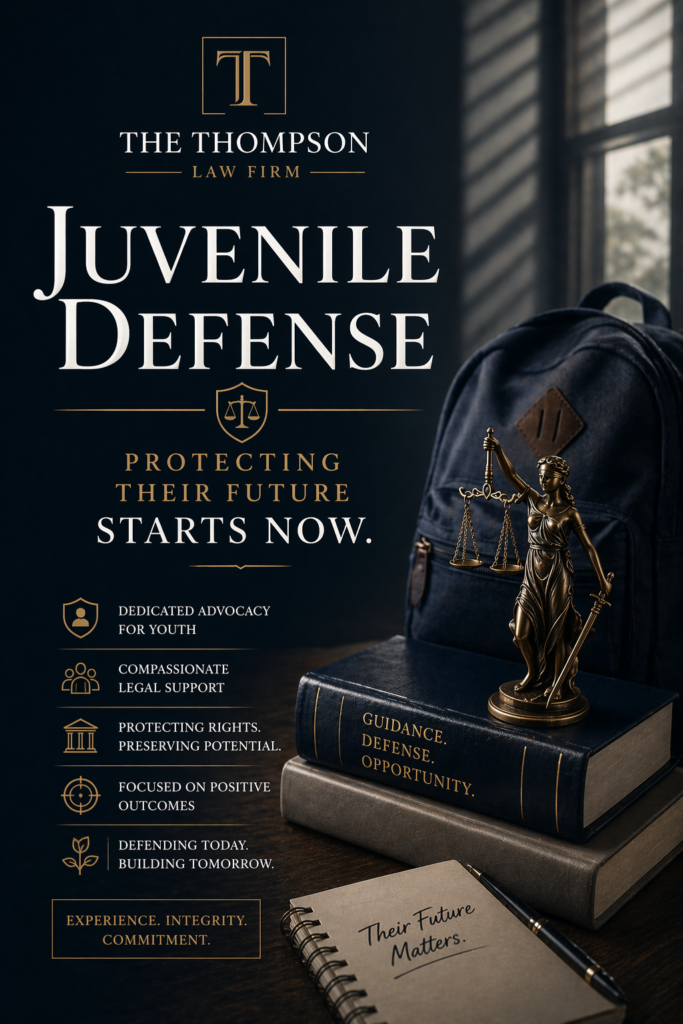 When a minor is accused of a crime, the consequences can extend far beyond the immediate situation. A juvenile charge has the potential to impact education, future opportunities, and long-term reputation. At The Thompson Law Firm, we understand what’s at stake—and we act quickly to protect your child’s rights, record, and future.