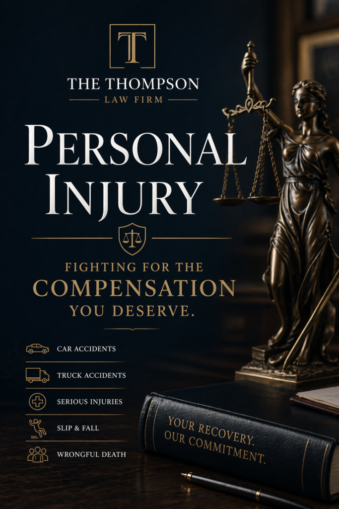 At The Thompson Law Firm, we provide comprehensive legal services designed to protect your rights, your business, and your future. Our firm delivers strategic, results-driven representation across a select range of practice areas—ensuring every client receives the attention, preparation, and advocacy they deserve.