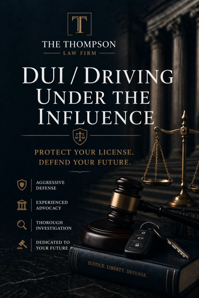 The Thompson Law Firm represents clients facing a variety of DUI-related charges, including: